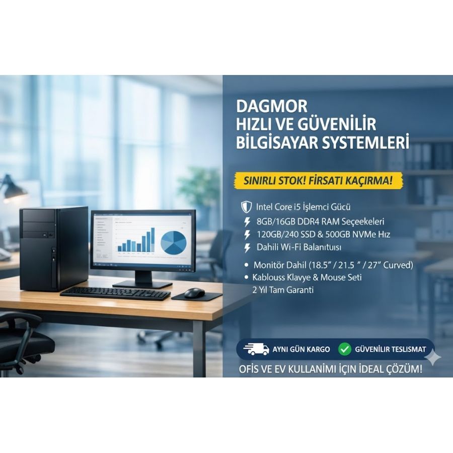 Ofis ve ev kullanıcıları düşünülerek hazırlanmış bu masaüstü bilgisayar; stabil performansı, hızlı açılışı ve uzun ömürlü donanımı ile günlük tüm ihtiyaçlarınızı rahatlıkla karşılar.